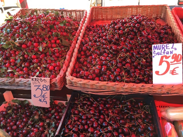 さくらんぼもいっぱい売ってた。何個か種類があるみたい。試食したけど、甘かった!