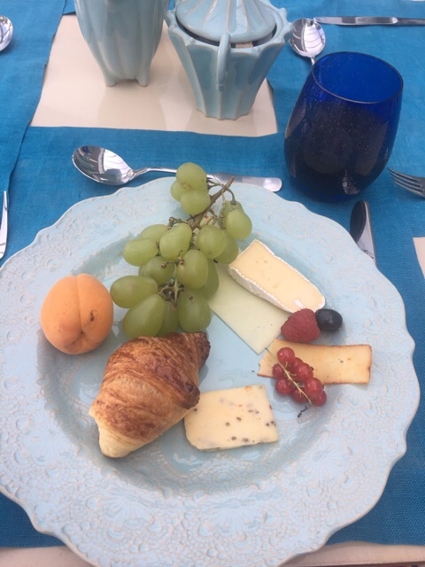 朝食はパンにシリアル、サラダ、チーズ、コールドフィッシュ、